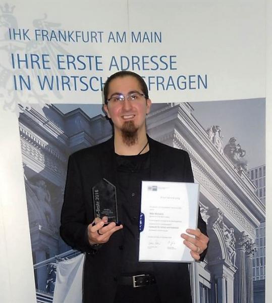 Anlässlich eines Festaktes in der IHK Frankfurt am Main bekam er eine Bestenurkunde und den entsprechenden Pokal überreicht.