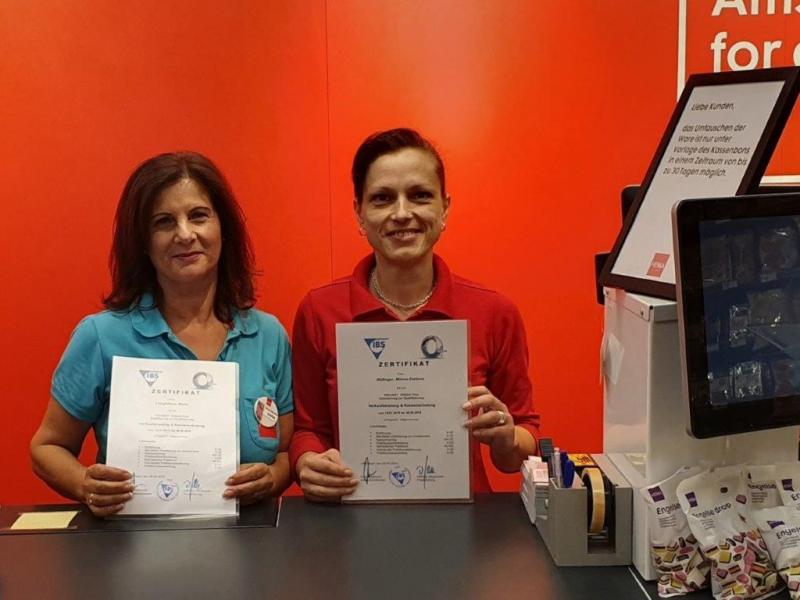 Auch Frau Longhitano (l.) und Frau Döllinger (r.) haben erfolgreich den Kurs "Verkaufstraining/ Kassenschulung" absolviert und können in kurzer Zeit eine Beschäftigung aufnehmen.